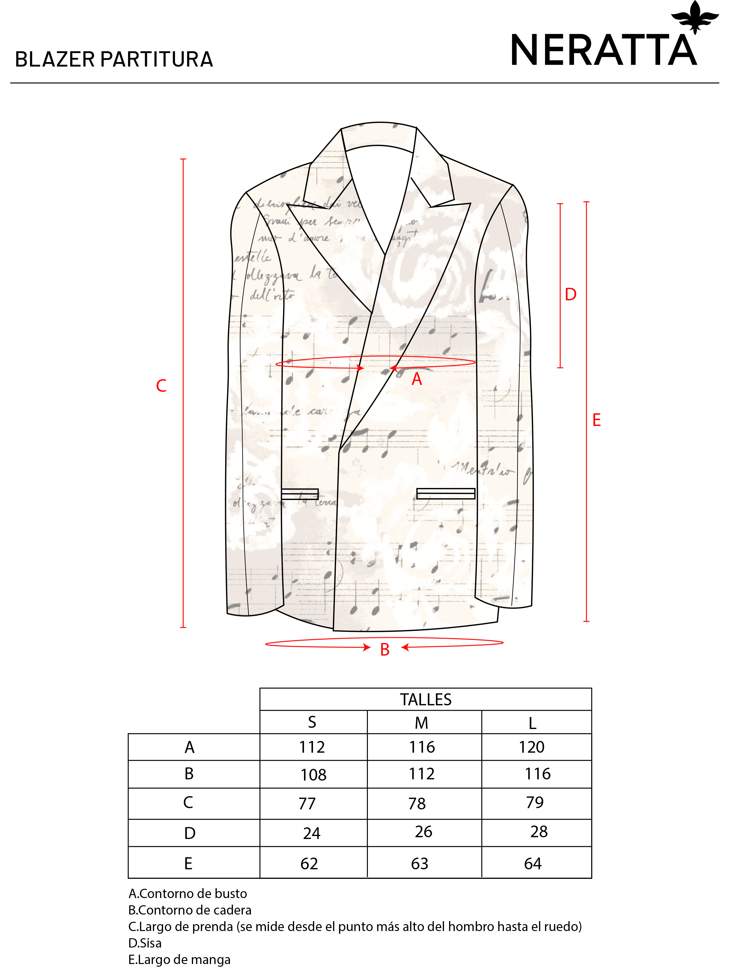 Blazer con hombreras cruzado. De silueta recta regulable con botones de pasta internos, y bolsillos ojal al frente. En su espalda posee tira del mismo textil con dos medialunas metálicas para regular su ajuste. Estampa única realizada para la colección de AW26. Su interior se encuentra íntegramente forrado con tafeta jacquard personalizada.