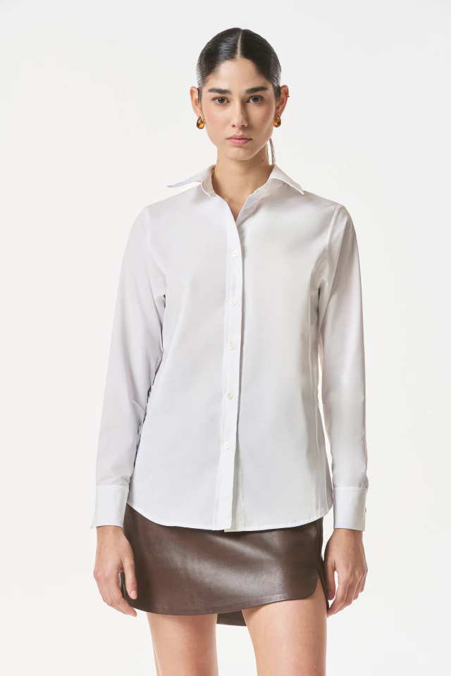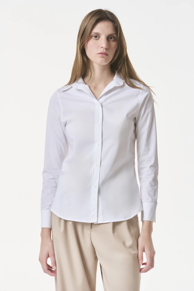 Camisa de Poplin de Algodón. De silueta clásica al cuerpo y botones de nácar a tono. Confeccionada en Poplin de algodón con spandex para su mejor comodidad.