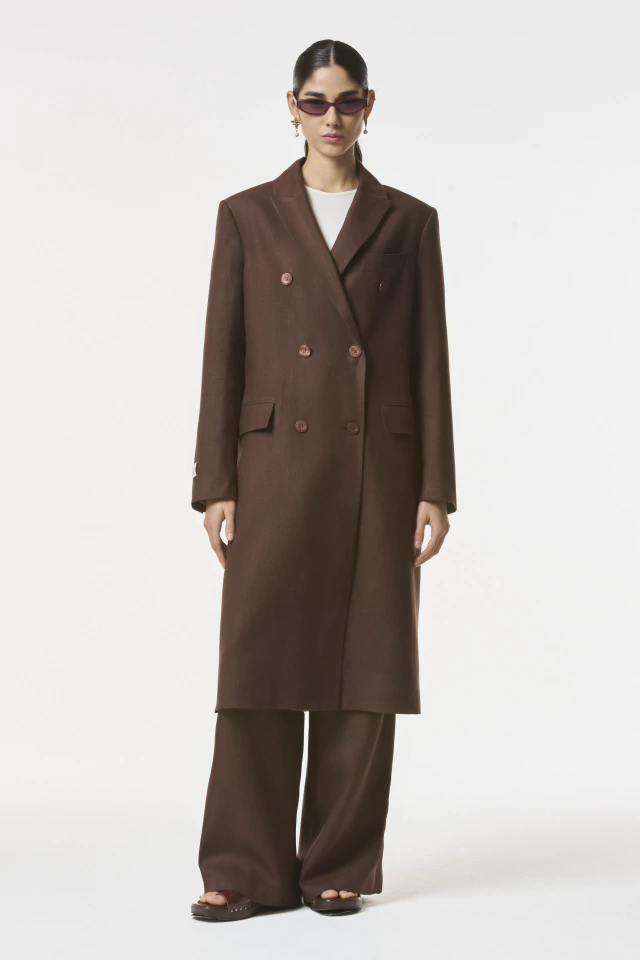 Composición: 100% Lino. Interior con forrería de Tafeta de acetato personalizada. Textura de Lino sastrero con estructura pero fresca para cualquier ocasión