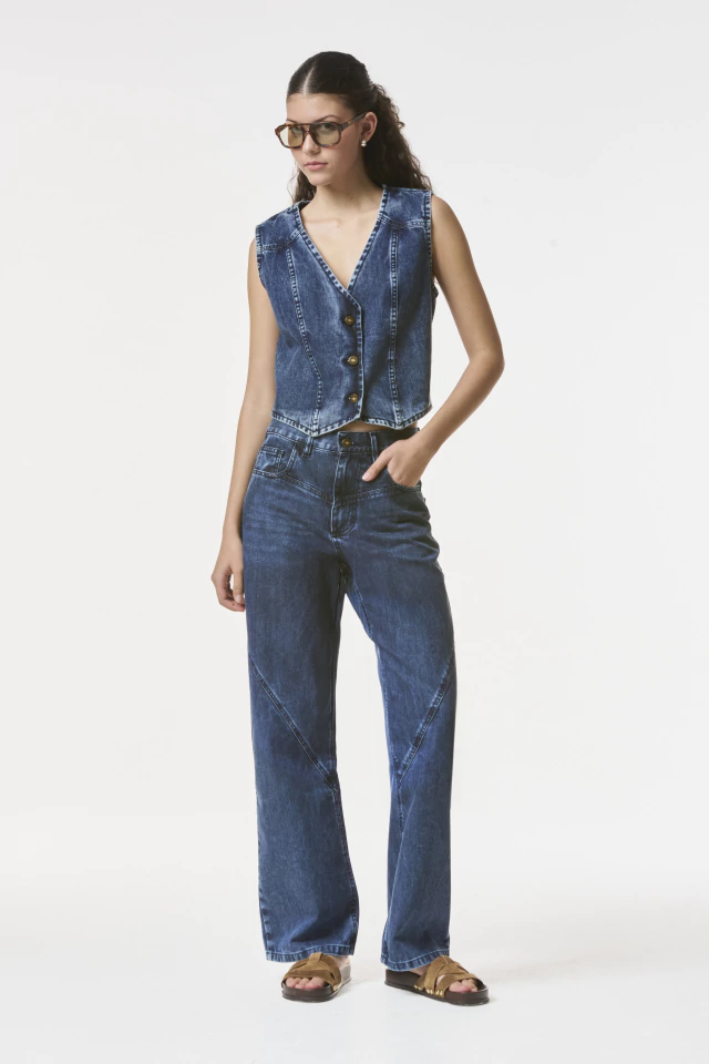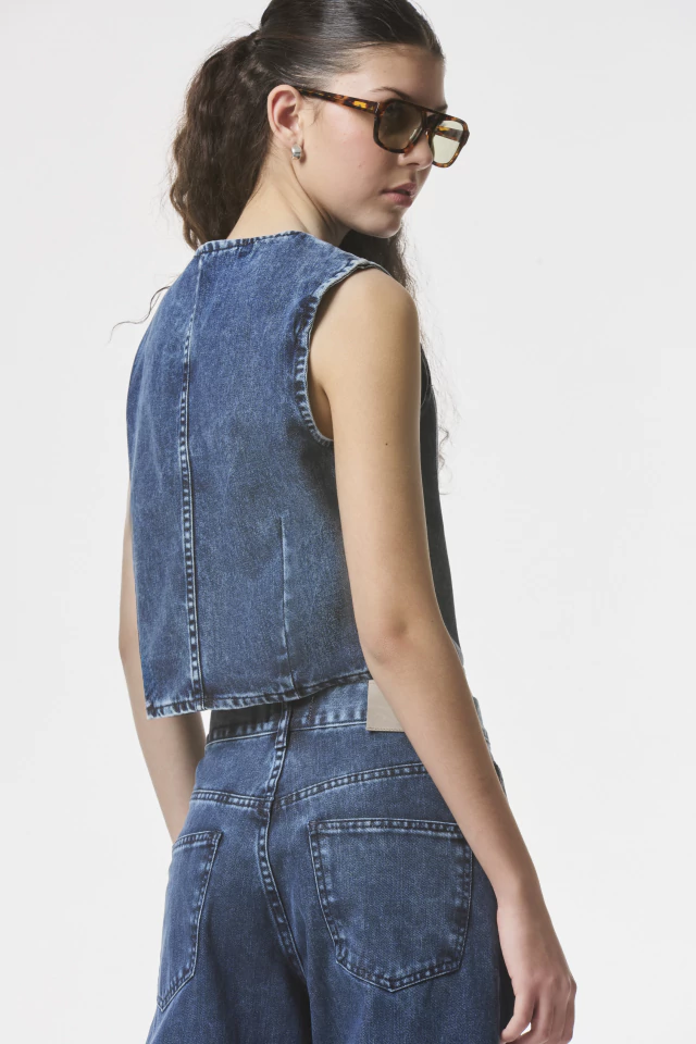 Chaleco de Jean. Silueta recta con botones jeaneros personalizados de la marca. Su interior se encuentra totalmente envivado a tono.