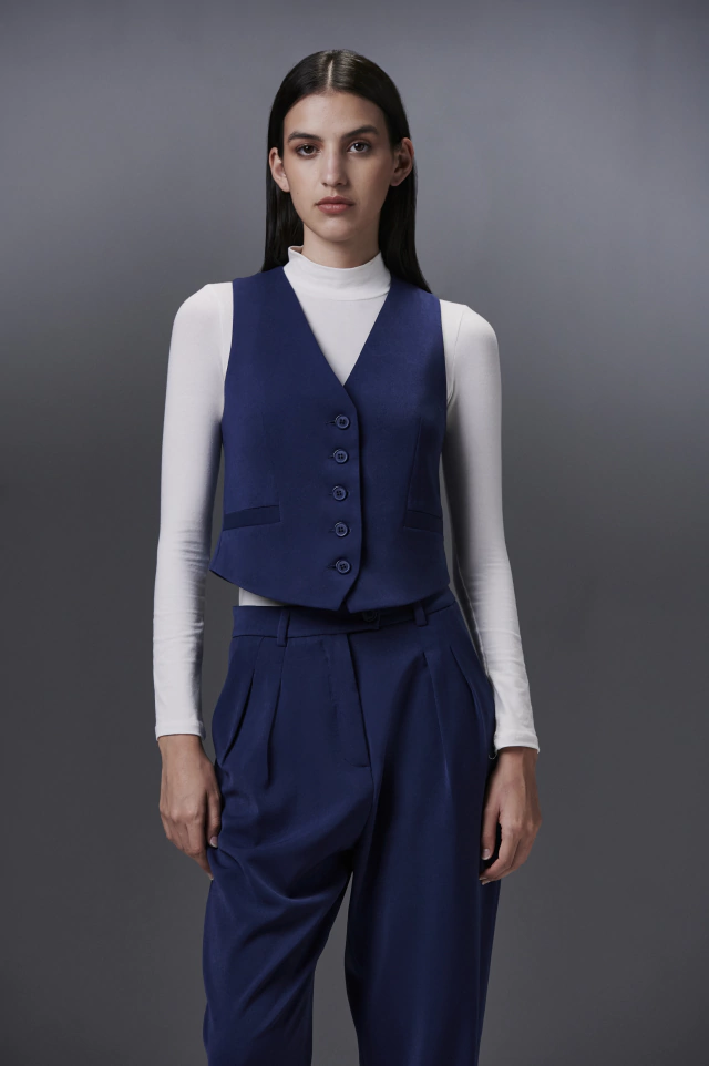Chaleco sastrero.  Silueta recta con botones de pasta al frente y bolsillos ojal. En su espalda contiene etiqueta "Exclusive Item" by Neratta. Su interior se encuentra íntegramente forrado con tafeta jacquard.
