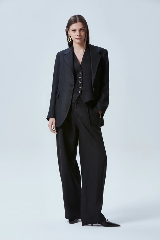 Composición: 100% Lino. Interior con forrería de Voile 100% Algodón. Textura de Lino sastrero con estructura pero fresca para cualquier ocasión