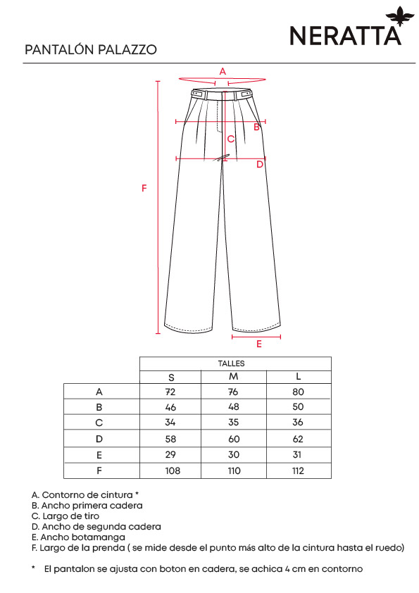 Medidas: disponible del talle S al L. Maria utiliza talle S y sus medidas son 82/60/87, Altura 1,74. Encontrá más detalles en el botón "Guía de talles" o consultanos por Chat privado o WhatsApp para una atención más personalizada.