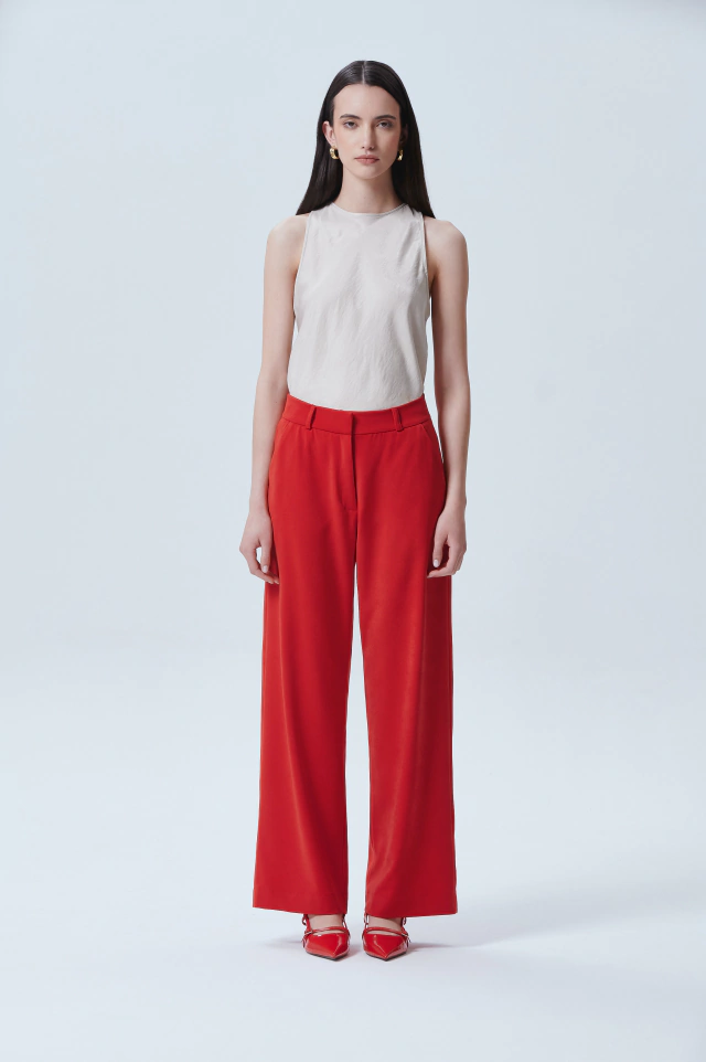 Pantalón sastrero recto. Calce tiro alto con cierre y broches pantaloneros al frente. Bolsillos laterales y bolsillo ojal trasero.