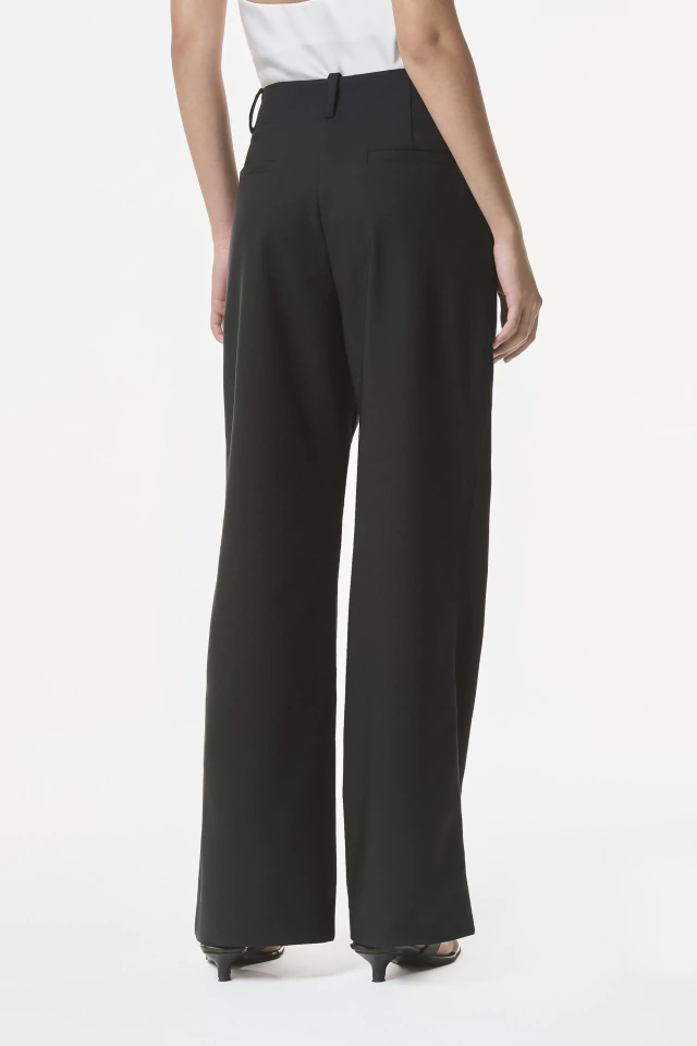 Pantalón sastrero Semi oxford. Confeccionado en textil sastrero de Tencel. De silueta tiro alto con acceso sin cintura marcada y cierre al frente. Bolsillos laterales y pinzas que recorren toda la pierna aportándole un toque de diseño distinguido. Nuestro pantalón sastrero clásico atemporal de todas las temporadas.