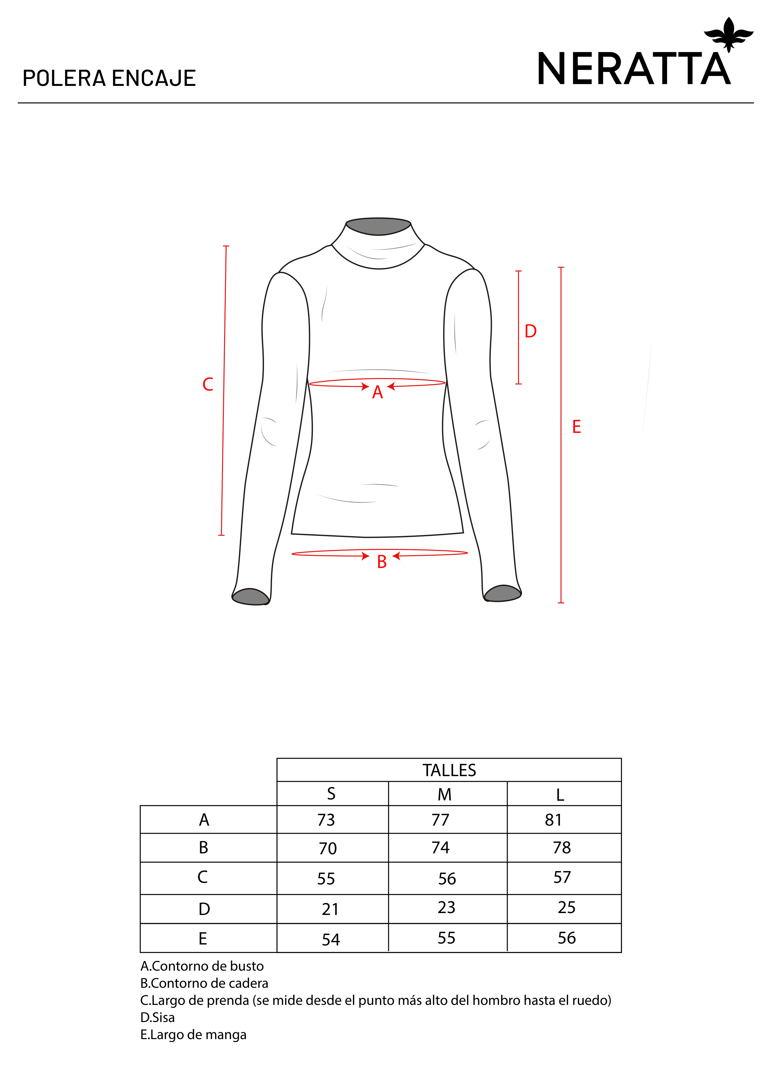 Polera confeccionada en encaje elastizado. De calce fit, cómodo, adaptable al cuerpo. Disponible también en color Black.