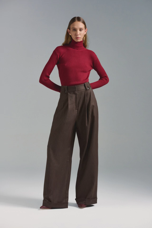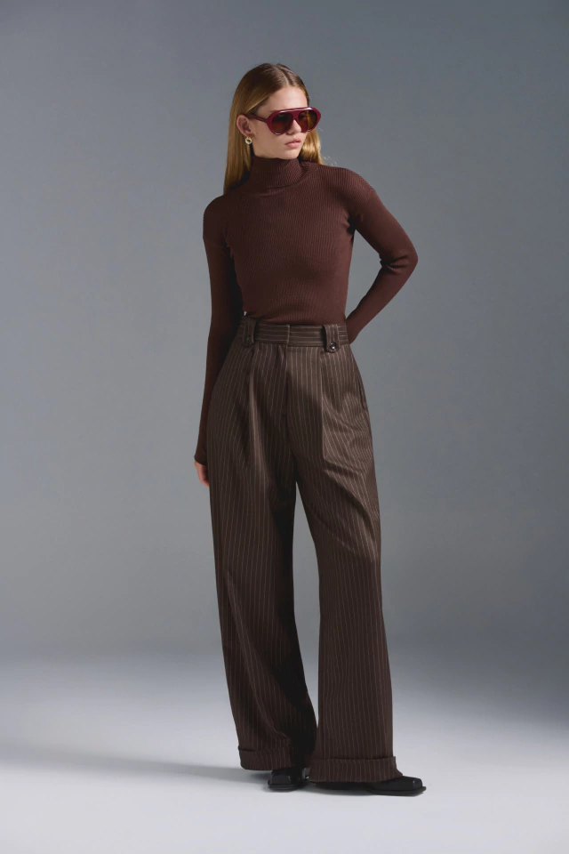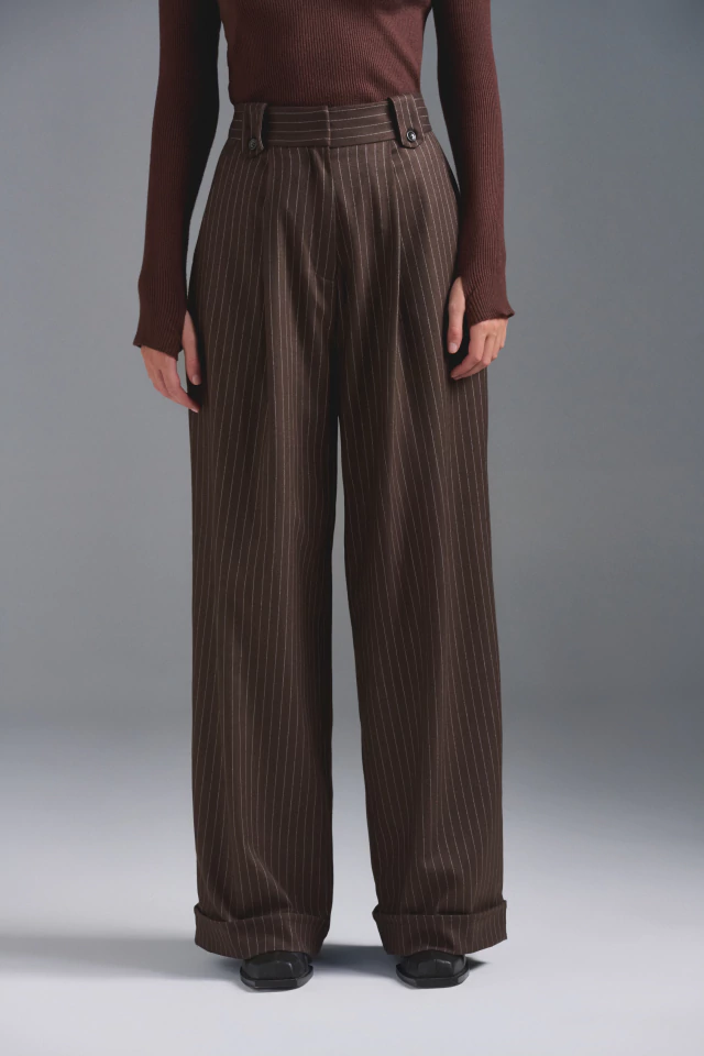 Pantalón sastrero con pinzas. De cintura alta con cierre y broches pantaloneros al frente. Bolsillos laterales, presillas decorativas en cintura con botones a tono y doblez en botamanga. Disponible también en color Cream, Navy y Denim Tencel.